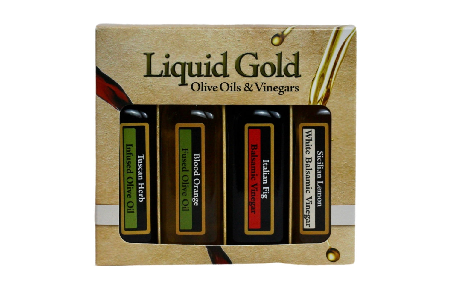 Classic Italian - Tuscan Olive Oil, Garlic Olive Oil, Fig Dark Balsamic, Sicilian Lemon White Balsamic.